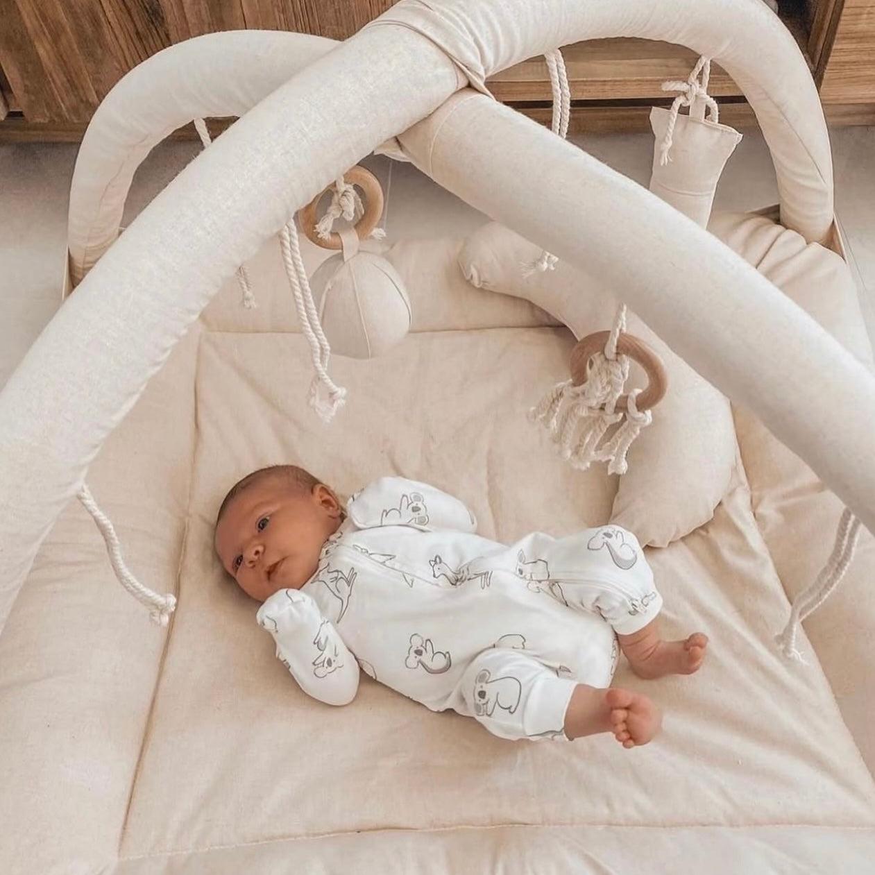 Rattan Play Gym Bundle | 100% Wool Filled | Lined Linen
